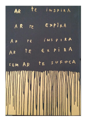 "Sem título", casca de arvore destruída por queimada em Mato Grosso, sementes de dendê, fibras de piaçaba e pigmentos naturais sobre duratex, medindo 130x80 cm. (Reproduzido no livro Krajcberg, figura 53, Gabinete de Arte Rio de Janeiro).