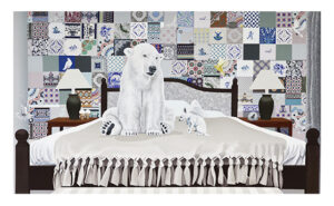 "Urso polar e seus amigos monocromáticos num habitat quase natural" - série interiores - óleo sobre tela - medindo 150x250cm.- assinado e datado 2010 no verso.