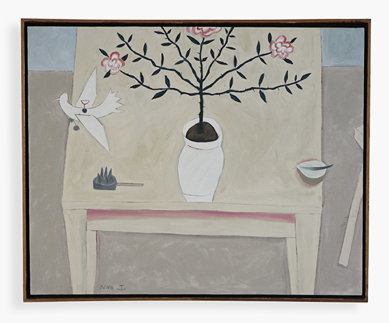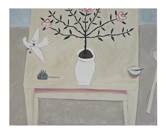 Vaso de flores sobre a mesa – óleo sobre tela – medindo 100x80cm.- assinado no canto inferior esquerdo.