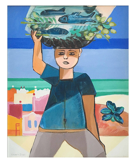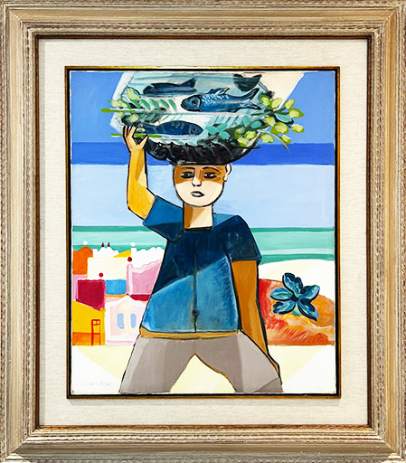 Vendedor de peixes – óleo sobre tela – medindo 73x60cm.- assinado no canto inferior esquerdo. Década de 70.