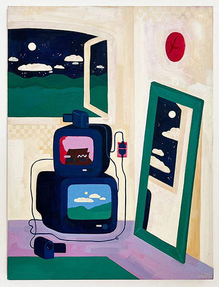 “Reflexo II” – acrílica e pastel oleoso – medindo 80x60cm.- assinado e datado 2024 no verso.