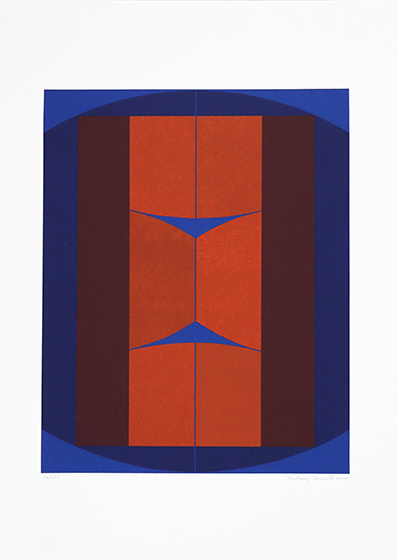 Sem título – gravura azul e laranja – tiragem 26/100 – medindo 66x47cm.- assinado e datado 2010 no canto inferior direito.
