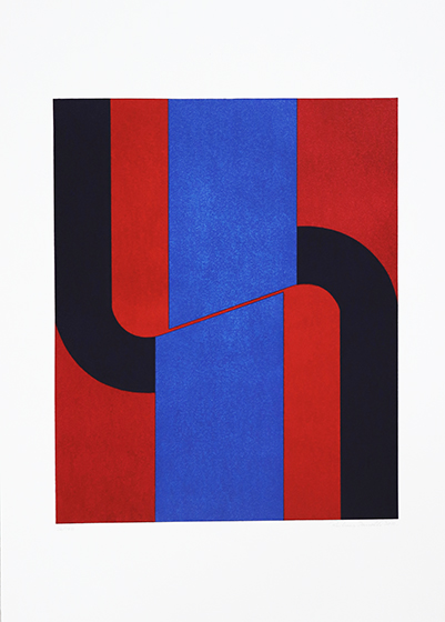 Sem título – gravura azul, preto e vermelho – tiragem 26/100 – medindo 66x47cm.- assinado e datado 2010 no canto inferior direito.